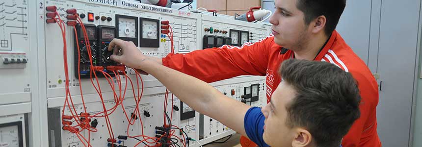 | 13.01.10 Электромонтер по ремонту и обслуживанию электрооборудования (по отраслям) Срок обучения: 1 год 10 месяцев. На базе 9 классов (очная форма обучения, бесплатно). Квалификация: Электромонтёр по ремонту и обслуживанию электрооборудования. Вступительные испытания: без экзаменов, по среднему баллу аттестата. Количество мест: 25 мест. Отсрочка от армии. |