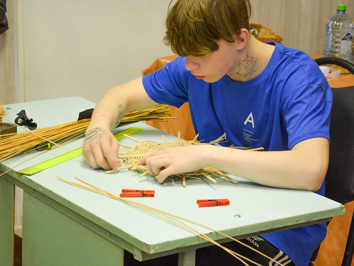 | 12483 Изготовитель художественных изделий из лозы Срок обучения: 1 год 10 месяцев. На базе 9 классов (очная форма обучения, бесплатно). Квалификация: Изготовитель художественных изделий из лозы. Вступительные испытания: без экзаменов. Количество мест: 11 мест. Основания для поступления: свидетельство об обучении, заключение медико-психолого-педагогической комиссии (ПМПК). |
