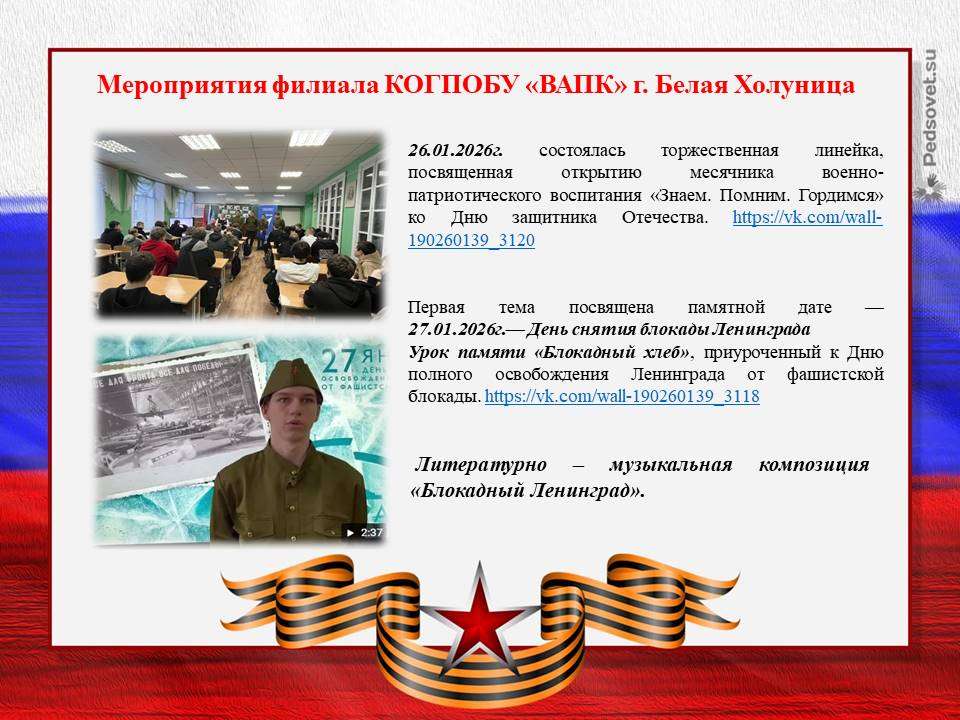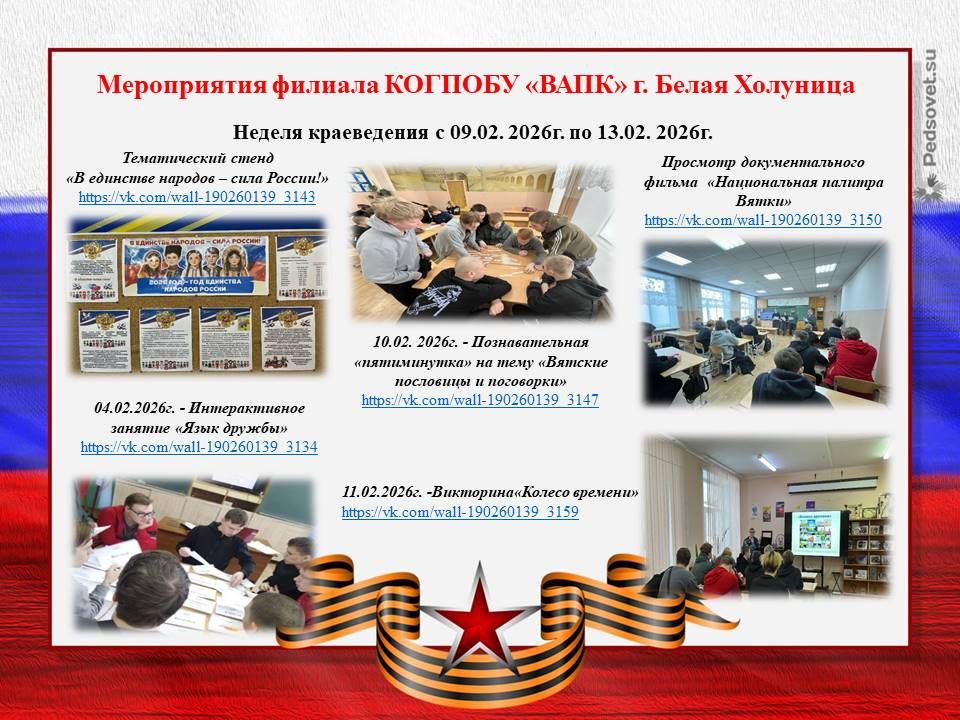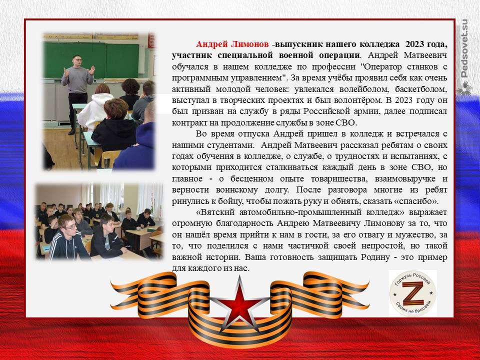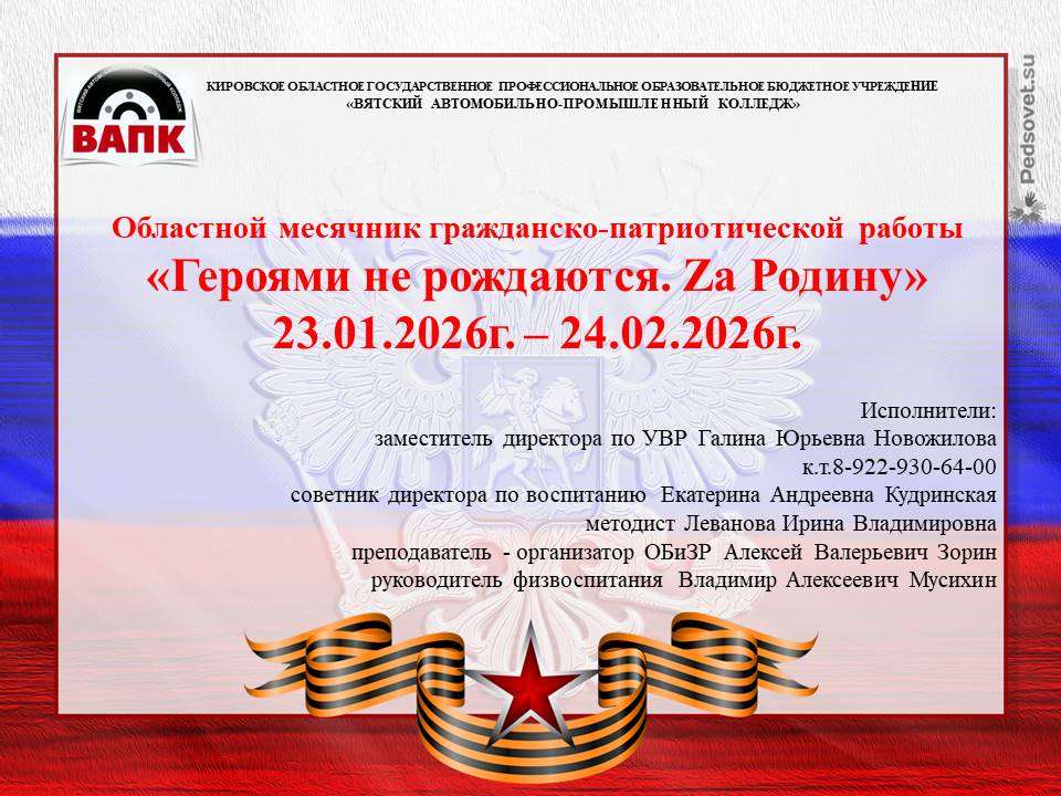 В течение учебного года 2025-2026 в Вятском автомобильно-промышленном колледже реализуется комплексная программа «Гражданин и патриот». В рамках данной программы в феврале проходит месячник гражданско-патриотической работы.